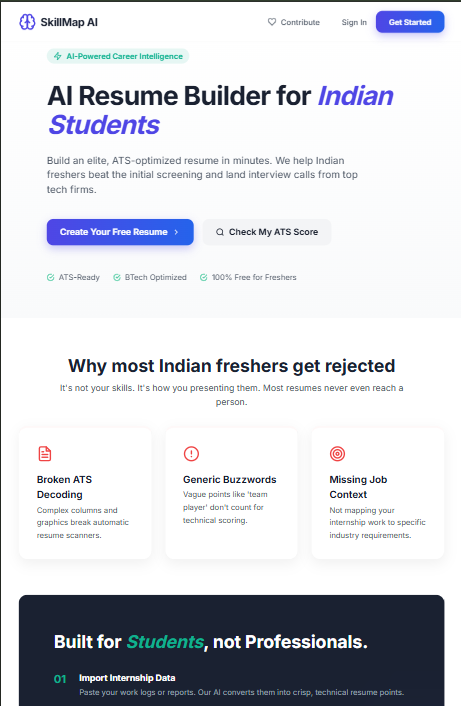 SkillMap AI extracts skills from real projects, computes role-readiness scores with weighted gap analysis, generates ATS-optimized resumes, and recommends gap-filling projects — all in one continuous intelligence loop.